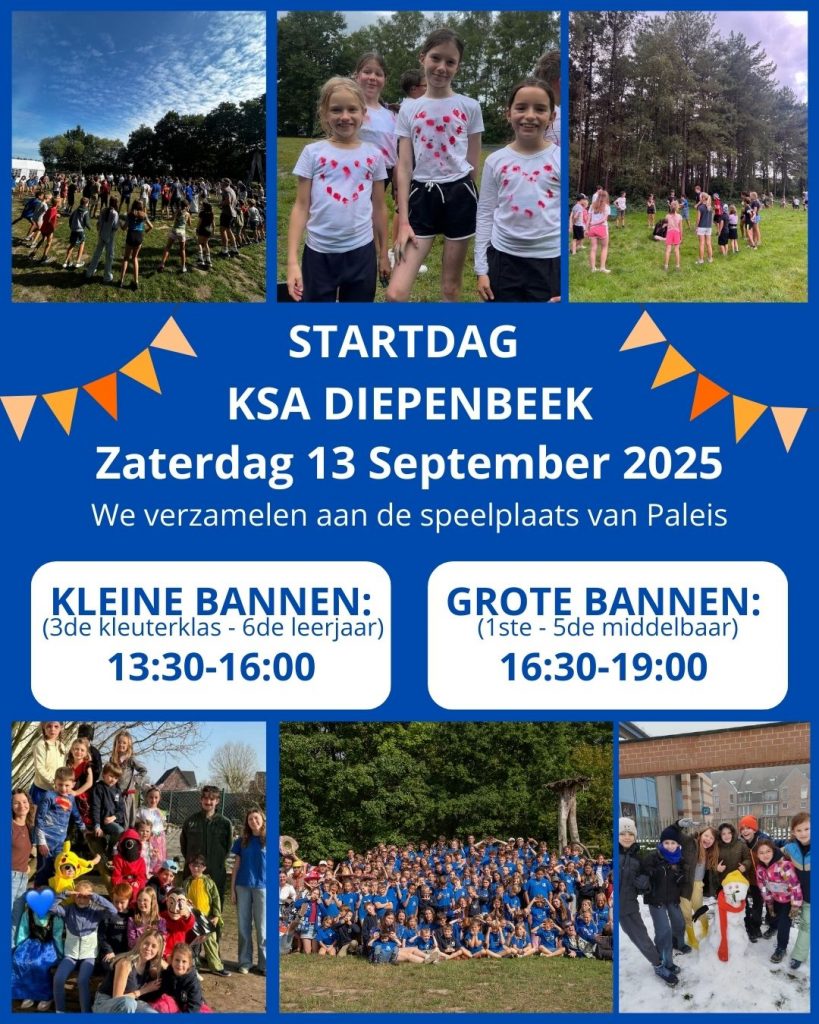 Op zaterdag 13 september gaat ons nieuwe KSA-jaar weer van start! Voor de kleine bannen zal de startdag doorgaan van 13u30 tot 16u, en voor de grote bannen van 16u30 tot 19u. We verzamelen zoals altijd op de speelplaats van Paleis.